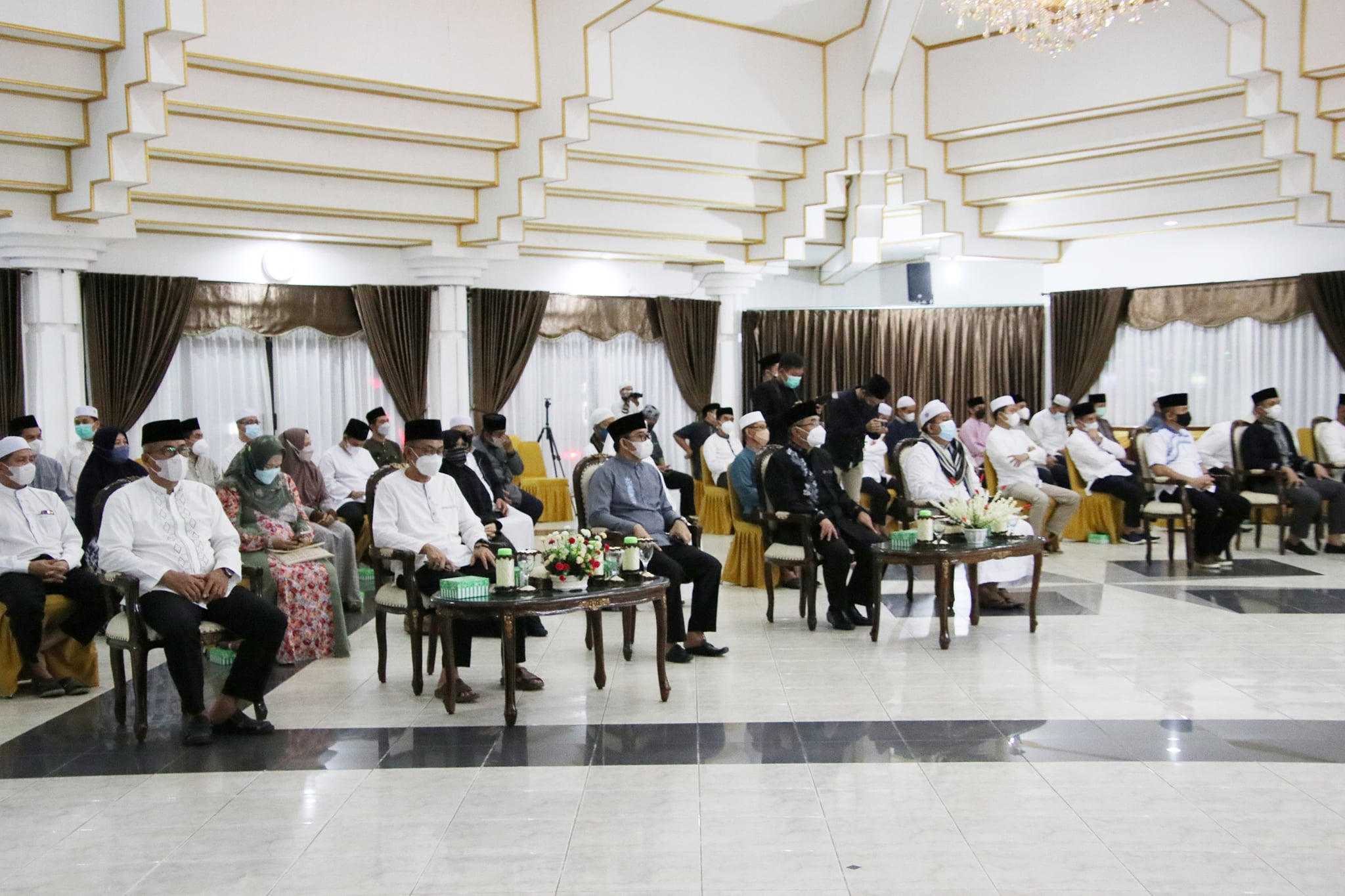 Kegiatan ini dilaksanakan dengan menerapkan protokol kesehatan ini ditandai dengan ketika masuk ke Pendopo Bupati, di cek terlebih dahulu suhu tubuh, wajib menggunakan masker dan menjaga jarak, kegiatan diawali dengan pembacaan Al-Quran dan dilanjutkan dengan tausyiah yang di sampaikan oleh Dr. Dini Mahdani, S. Pd, M. Pdi.