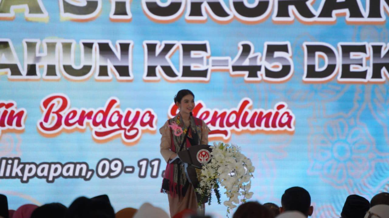 Ketua Dekranasda Kabupaten Hulu Sungai Selatan (Kab. HSS), Hj. Tata Syafrudin Noor turut berhadir dalam acara puncak Hari Ulang Tahun (HUT) ke-45 Dekranas yang dilaksanakan di Dome Balikpapan Sport and Convention Center, Provinsi Kalimantan Timur, Rabu (09/07/2025).