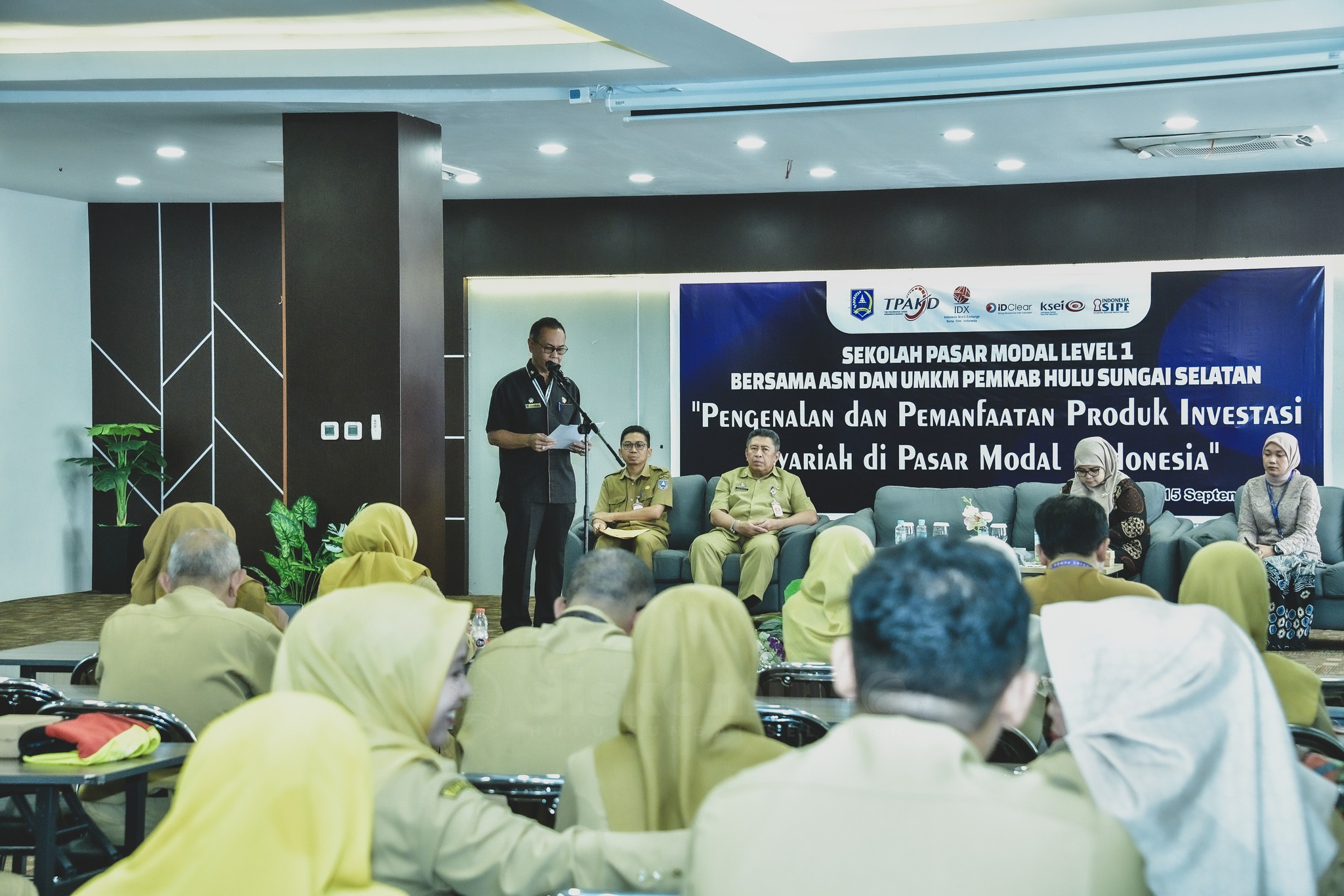 Sekretaris Daerah Kabupaten Hulu Sungai Selatan (HSS), Drs. H. Muhammad Noor, M.AP secara resmi membuka kegiatan Sekolah Pasar Modal Level 1 yang diikuti oleh Aparatur Sipil Negara (ASN) dan UMKM Hulu Sungai Selatan. Acara ini mengusung tema “Pengenalan dan Pemanfaatan Produk Investasi Syariah di Pasar Modal Indonesia”, dan berlangsung di Aula Mall Pelayanan Publik Kabupaten HSS pada Senin (15/9).