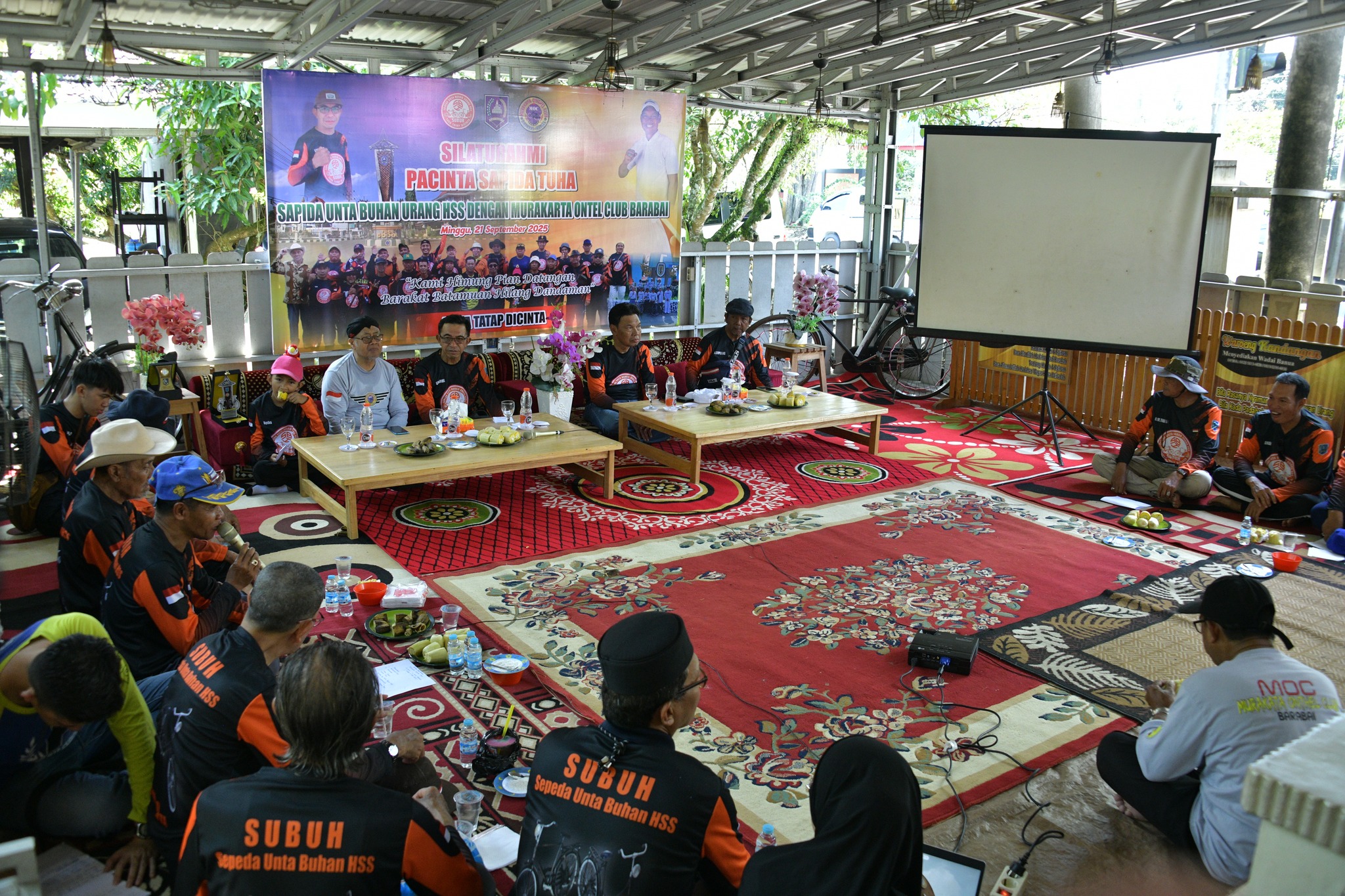 Dalam rangka mempererat tali persaudaraan antar komunitas sepeda ontel, Wakil Bupati Hulu Sungai Selatan (HSS) H. Suriani, S.Sos, M.AP, menghadiri acara silaturahmi yang digelar oleh Komunitas Sepeda Unta Banua Urang HSS (SUBUH) bersama Murakata Onthel Club (MOC) Barabai, pada Minggu (21/09/2025). Acara yang berlangsung penuh keakraban ini tidak hanya diisi dengan kegiatan bersepeda keliling Kabupaten HSS, namun juga diakhiri dengan ramah tamah dan penyerahan cinderamata dari Pemerintah Kabupaten HSS kepada MOC Barabai serta saling tukar cinderamata antara kedua komunitas.
