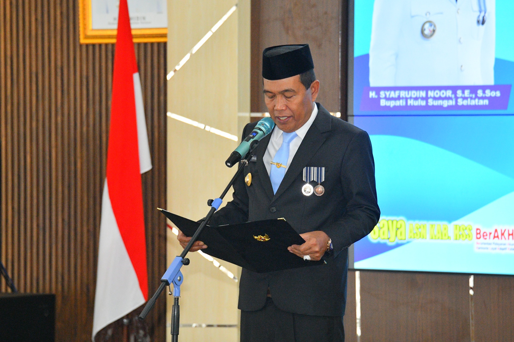 Dalam sambutannya, Bupati HSS, H. Syafrudin Noor, SE., S.Sos, menyampaikan bahwa pelantikan dan pengambilan sumpah jabatan ini merupakan wujud kepercayaan dan tanggung jawab besar yang harus diemban dengan penuh integritas dan dedikasi.