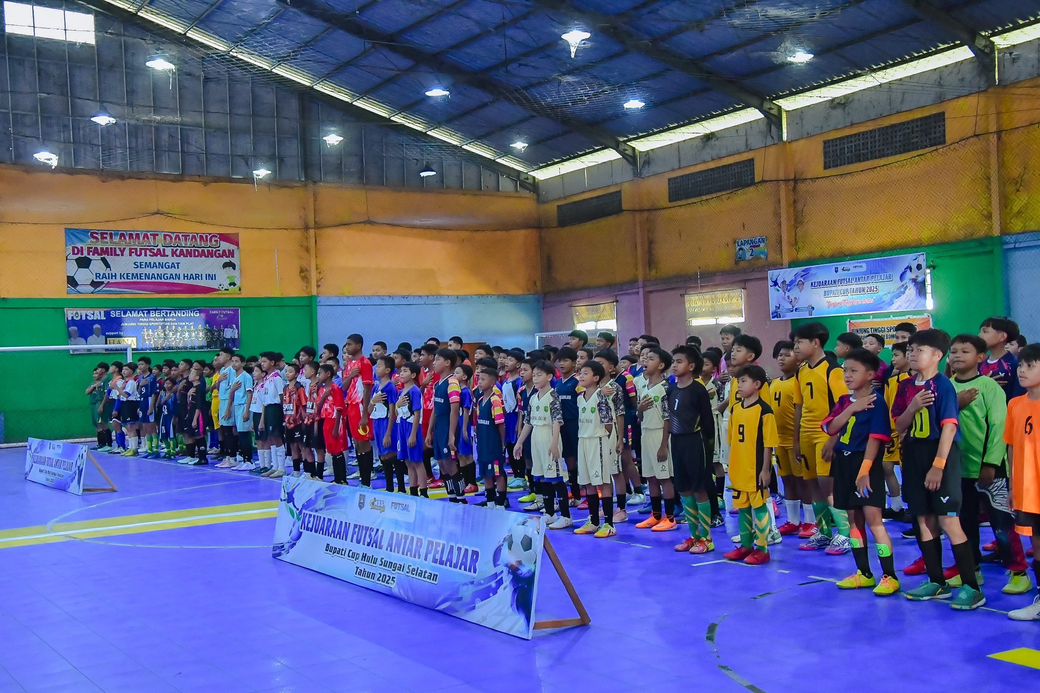 Semangat sportivitas dan pembinaan generasi muda membahana di Gedung Family Futsal, Jalan By Pass, Jambu Hilir, Kandangan, pada Rabu, 10 Oktober 2025. Bupati Kabupaten Hulu Sungai Selatan (HSS) H. Syafrudin Noor, SE, S.Sos secara resmi membuka gelaran akbar Lomba Futsal Antar Pelajar Bupati HSS Cup 2025 yang diikuti oleh puluhan sekolah dari berbagai tingkatan. Acara pembukaan ini turut dihadiri oleh Plt. Kepala Dinas Pendidikan, Plt. Kepala Dinas Pemuda, Olahraga, dan Pariwisata (Kadisporapar), Kapolsek Kandangan Kota, Lurah Jambu Hilir, serta jajaran panitia pelaksana.