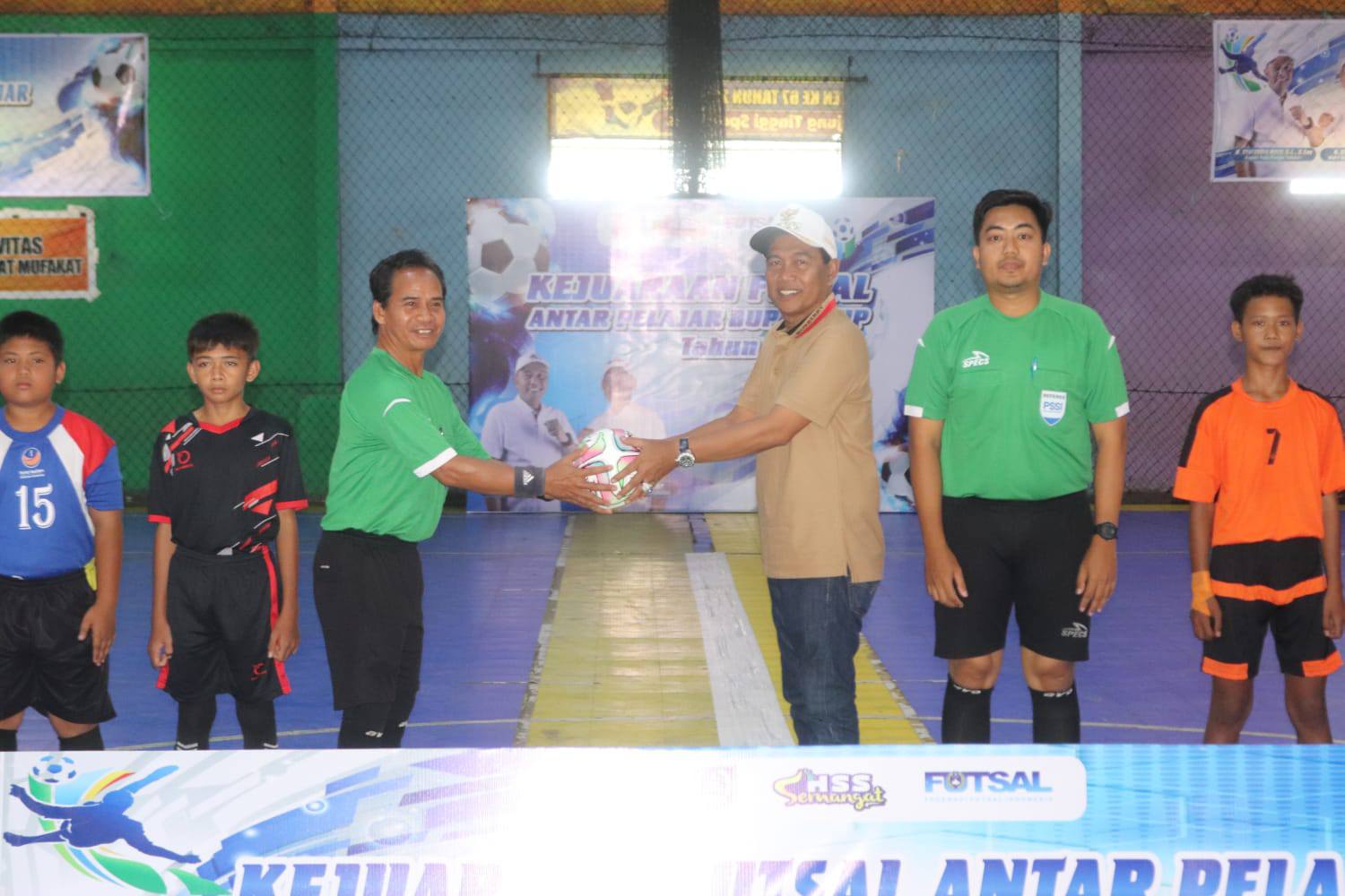 Acara Pembukaan Lomba Futsal Antar Pelajar Bupati HSS Cup 2025 resmi ditandai dengan tendangan pertama Bupati H. Syafrudin Noor ke arah gawang. Dengan tendangan simbolis tersebut, turnamen futsal bergengsi antar pelajar di Kabupaten HSS ini pun resmi dimulai.