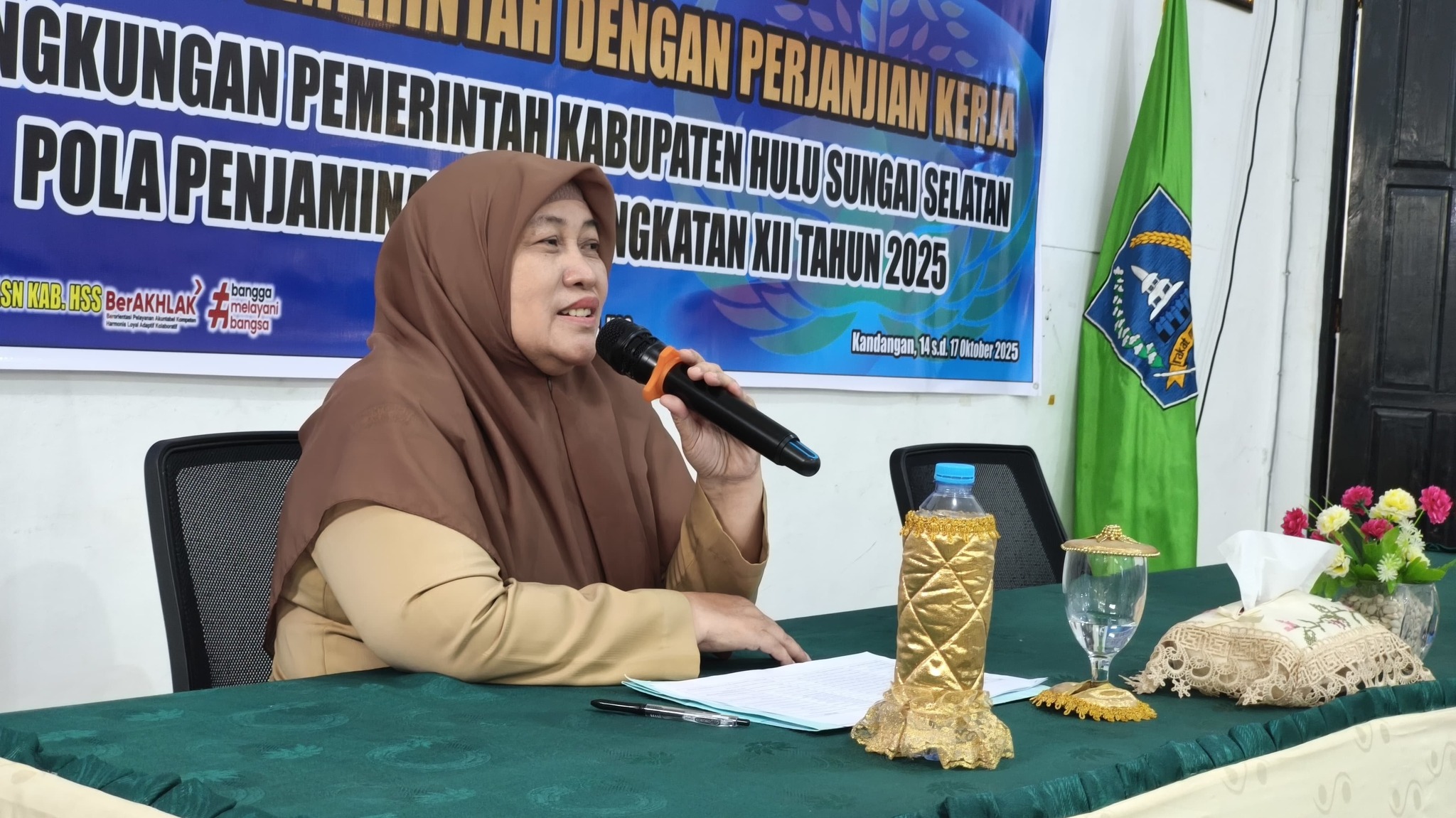 Bertempat di Gedung 2 Badan Kepegawaian dan Pengembangan Sumber Daya Manusia (BKPSDM) Kabupaten Hulu Sungai Selatan, Staf Ahli Bidang Ekonomi dan Keuangan Sekretariat Daerah, Hj. Siti Erma, S.Sos., M.AP, hadir sebagai narasumber dalam kegiatan Orientasi Pegawai Pemerintah dengan Perjanjian Kerja (PPPK) Pola Penjaminan Mutu Angkatan XII Tahun 2025. Selasa (14/10).