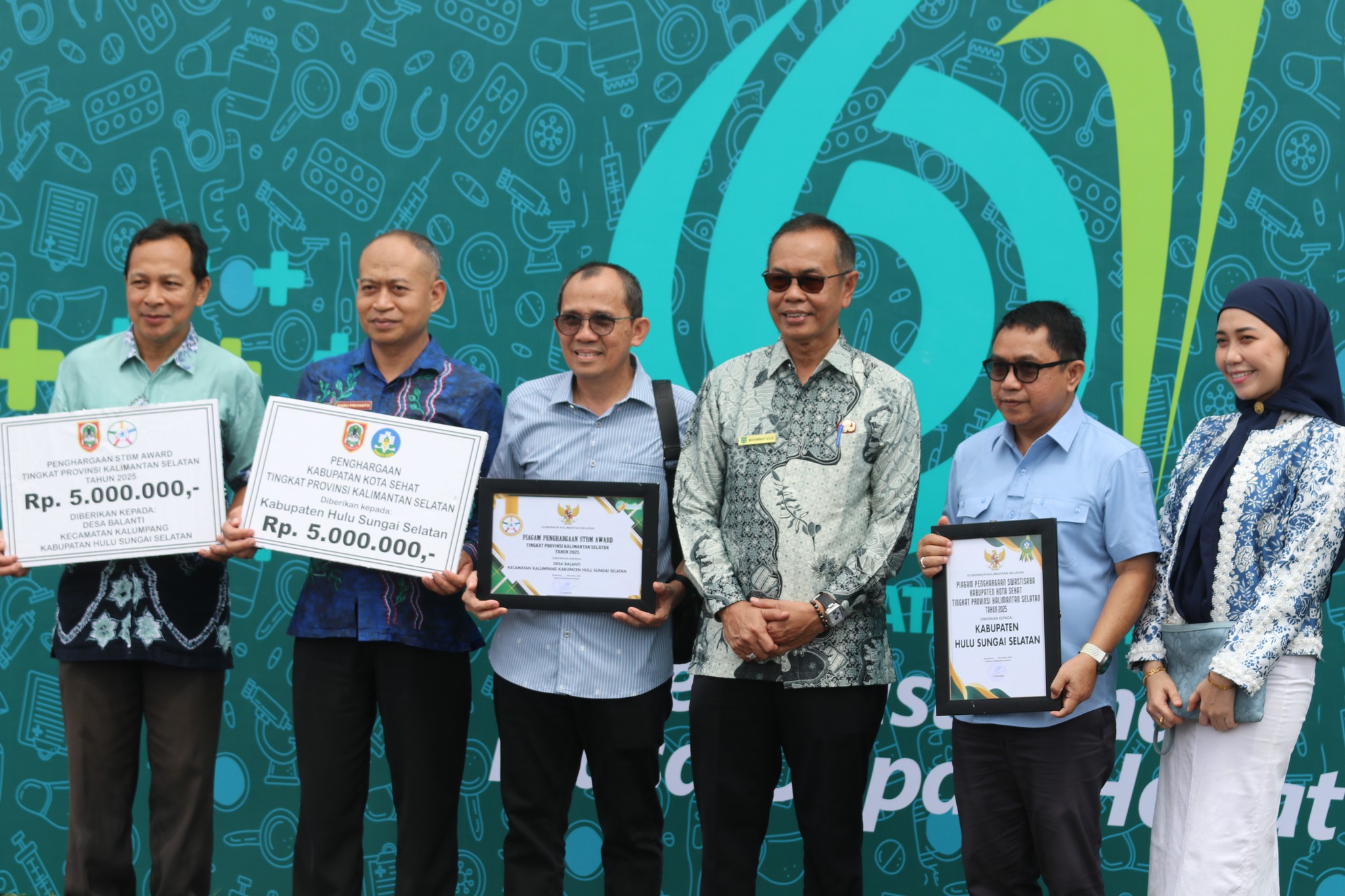 Pada kesempatan tersebut, Kabupaten HSS berhasil meraih Penghargaan Swastisaba Kabupaten/Kota Sehat Tingkat Provinsi Kalimantan Selatan Tahun 2025, serta STBM Award Tingkat Provinsi Kalsel yang diberikan kepada Desa Balanti, Kecamatan Kalumpang. Capaian ini menjadi bukti nyata komitmen Pemerintah Kabupaten HSS dalam meningkatkan mutu layanan kesehatan dasar dan mewujudkan lingkungan yang sehat bagi masyarakat.