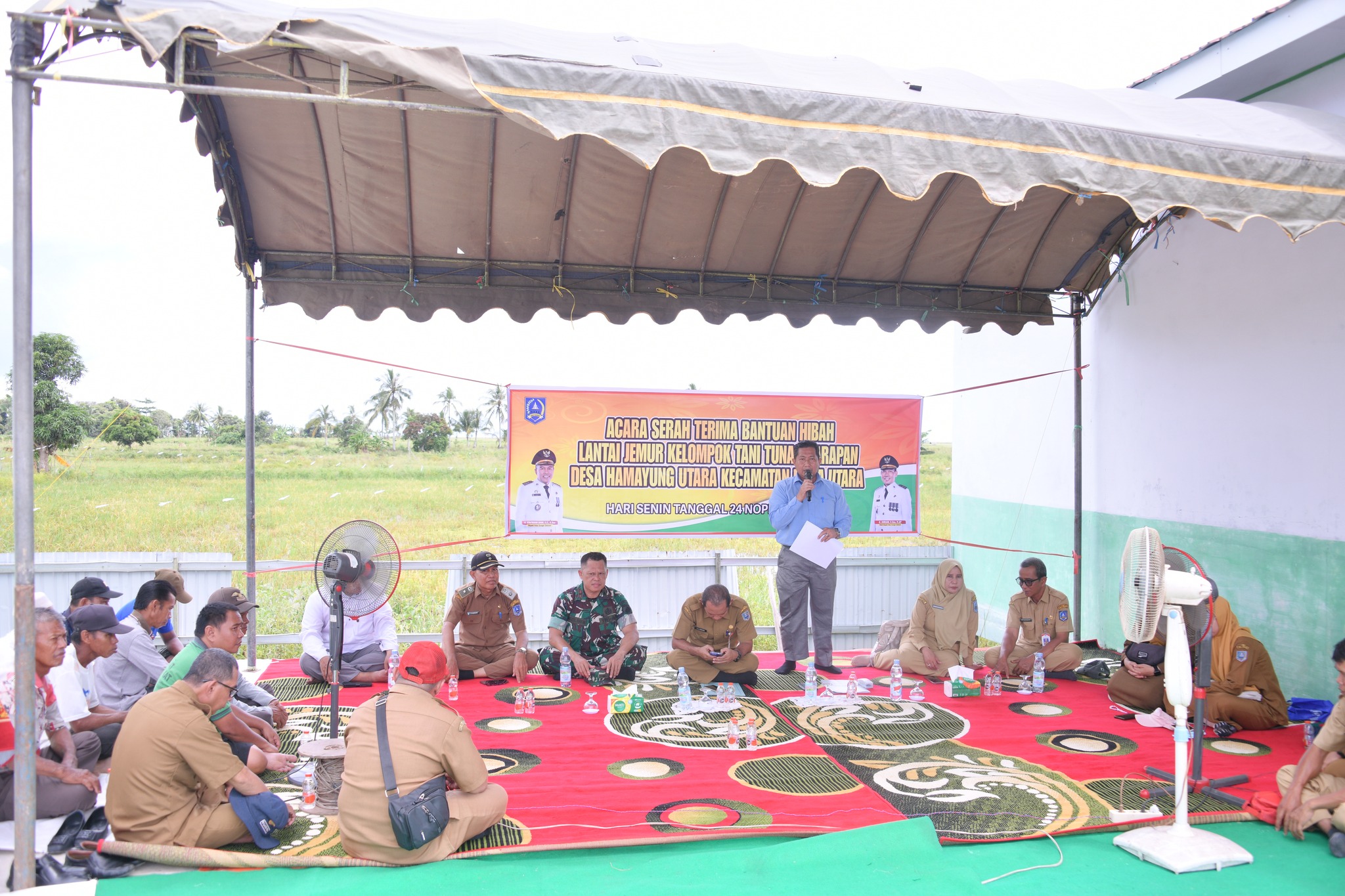 Dalam sambutan Wakil Bupati yang dibacakan oleh Muhammad Noor, disampaikan bahwa bangunan lantai jemur ini merupakan bagian dari upaya pemerintah dalam menyediakan infrastruktur pendukung pertanian sebagai langkah memperkuat kemandirian pangan di Kabupaten HSS.