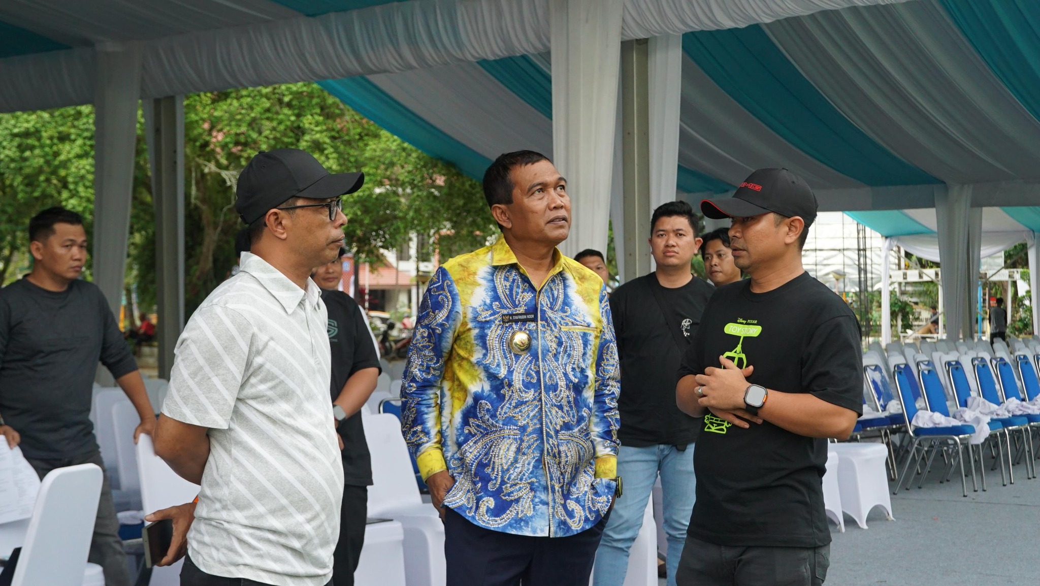 BUPATI HSS TINJAU KESIAPAN PUNCAK HARI JADI KE-75 DI LAPANGAN LAMBUNG MANGKURAT