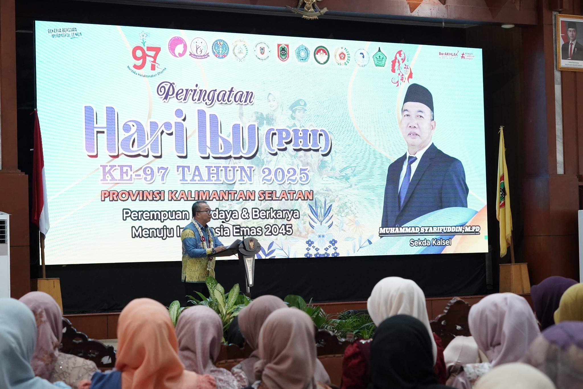 Gubernur Kalimantan Selatan H. Muhidin, melalui Sekretaris Daerah Provinsi Kalimantan Selatan, Syarifuddin, dalam sambutannya menegaskan bahwa Peringatan Hari Ibu tidak boleh dimaknai sebatas kegiatan seremonial, melainkan harus diwujudkan melalui aksi nyata yang berkelanjutan dengan melibatkan kolaborasi lintas sektor.