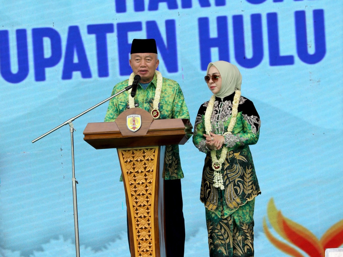 Bupati Hulu Sungai Selatan (HSS), H. Syafrudin Noor, SE., S.Sos, didampingi Ketua Tim Penggerak PKK Kabupaten HSS, Hj. Tata Syafrudin Noor, menghadiri acara puncak peringatan Hari Jadi Kabupaten Hulu Sungai Tengah (HST) yang ke-66 tahun, digelar di Taman Dwi Warna Barabai, Rabu (17/12/2025).