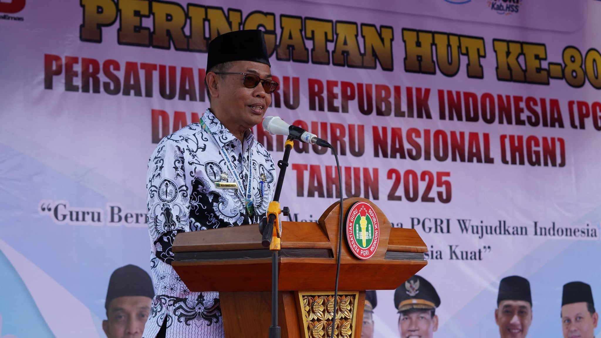Mewakili Bupati Hulu Sungai Selatan (HSS), Sekretaris Daerah Kabupaten HSS, Drs. H. Muhammad Noor, menghadiri puncak peringatan Hari Ulang Tahun (HUT) ke-80 Persatuan Guru Republik Indonesia (PGRI) sekaligus Hari Guru Nasional (HGN) Tahun 2025 yang digelar di depan Stadion 2 Desember, Kecamatan Kandangan, Kamis (18/12/2025).