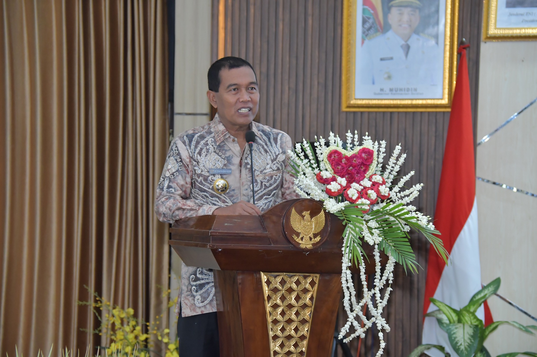 Dalam sambutannya, Bupati Hulu Sungai Selatan H. Syafrudin menyampaikan bahwa peringatan Hari Ibu merupakan momentum yang sangat istimewa untuk memberikan penghormatan, penghargaan, dan rasa terima kasih yang setulus-tulusnya kepada para ibu dan seluruh perempuan atas peran, pengabdian, serta kontribusinya dalam keluarga, masyarakat, dan pembangunan daerah. Menurutnya, di balik kemajuan daerah dan kuatnya sebuah keluarga, selalu terdapat peran perempuan yang dijalani dengan ketulusan, kesabaran, dan kasih sayang.