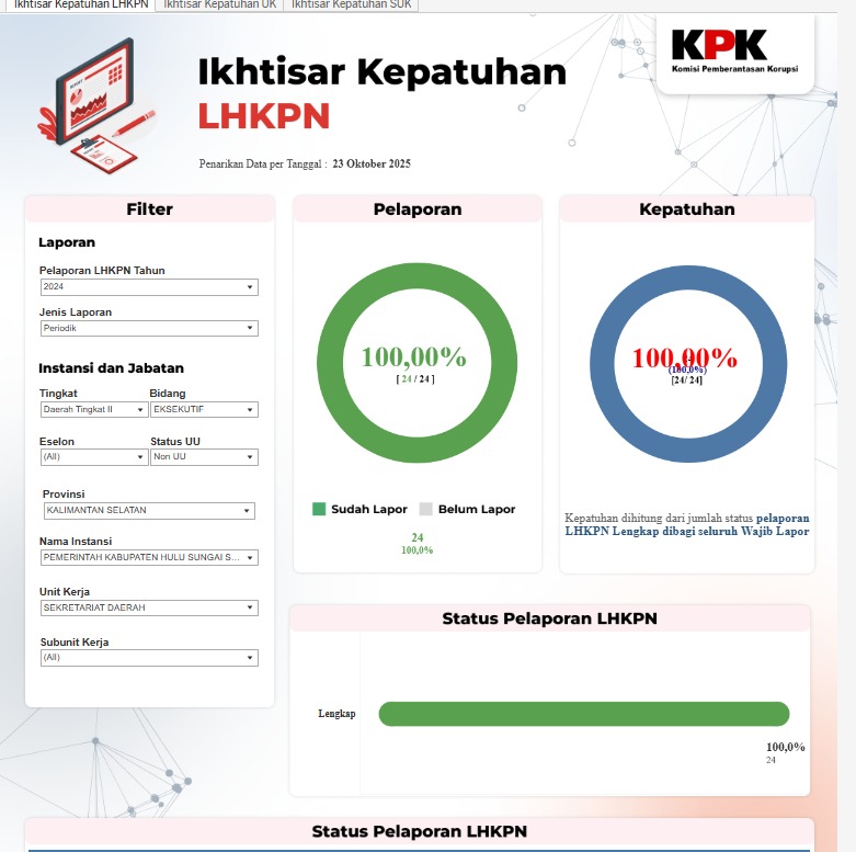 LHKPN PEJABAT NEGARA YANG TELAH DIPERIKSA, DIVERIFIKASI, DAN TELAH DIKIRIMKAN OLEH KPK 2025
